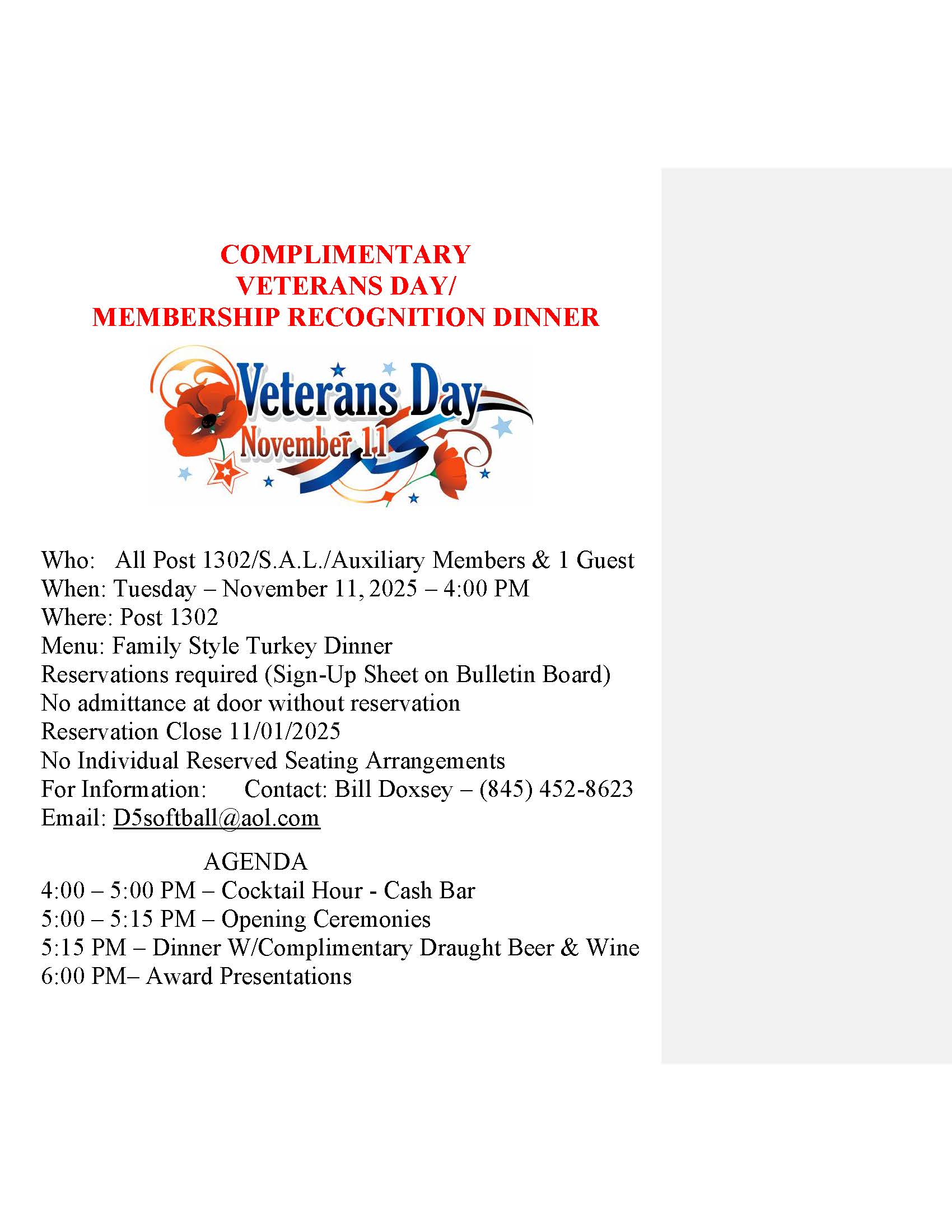 Events Calendar ARLINGTON POST 1302 Events: November 2025